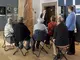 Personengruppe auf Klappstühlen bei einer Führung.