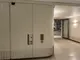 Außenansicht zweier Aufzüge. Der linke ist breiter als der rechte.