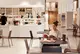 Blick ins Museumscafé. Frau sitzt mit Kaffee und Gebäck an einem der Tische.