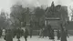 Ansicht Schloss mit rauchenden Türmen. Im Vordergrund stehen Beobachter.