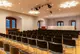 Blick in den Saal von hinten rechts mit Bestuhlung, Bühne und Rednerpult.