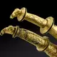 Die meisterlich gearbeiteten Trinkhornbeschläge aus Bronze und Eisen lassen den typischen Kunststil der beginnenden Latènezeit erkennen. Während eines der Trinkhörner im Schuppendekor noch klassisch-griechische Muster aufnimmt, spielt das andere mit keltischen Wellenranken. Beide Beschläge enden in stilisierten Widderköpfchen mit mandelförmigen Augen und geschwungenen Brauen.